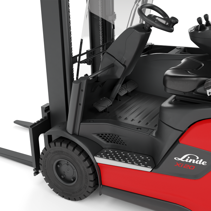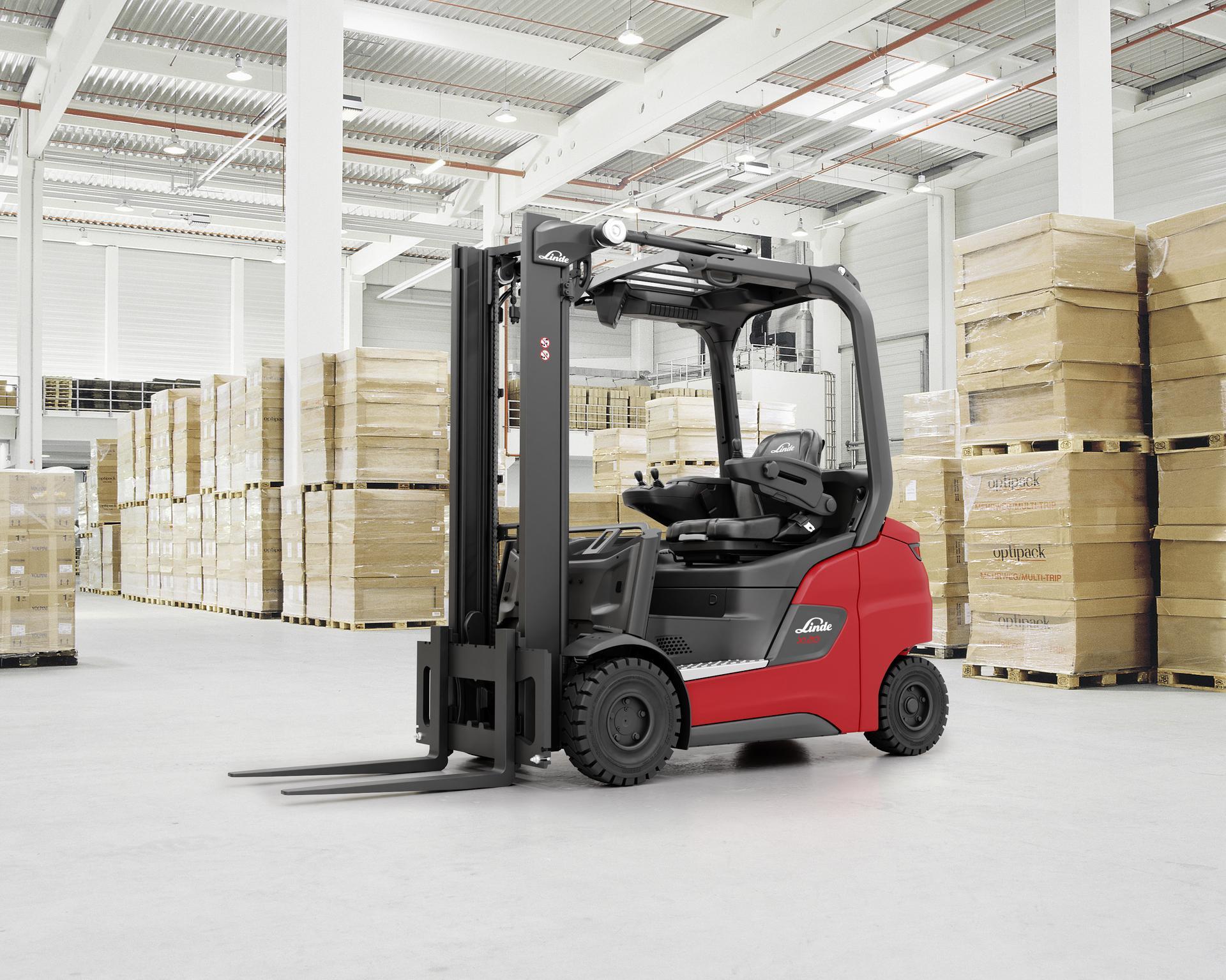Le chariot élévateur à quatre roues Linde Xi16 - Xi20 RP offre des performances élevées ainsi qu'une visibilité maximale grâce à l'absence de montants A.